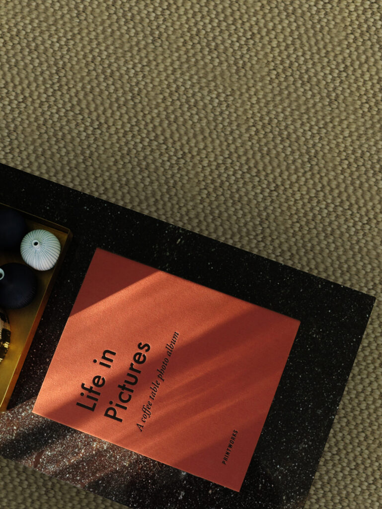 Descoperiți albumul foto pentru măsuța de cafea Life in Pictures, cu o husă elegantă din pânză de teracotă cu text negru. În interior, veți găsi 30 de pagini de hârtie foto neagră de înaltă calitate, permițându-vă să atașați fotografiile cu ușurință folosind autocolantele sau colțurile noastre foto, care sunt cumpărate separat.