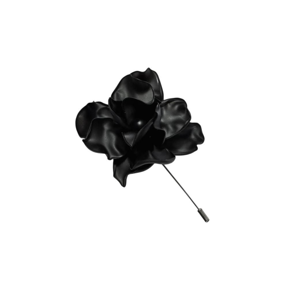 Pin realizat din PET reciclat, un simbol al mărcii noastre. Ușor, durabil, valoros. Poartă pinul cu floare neagră pe un rever de sacou/palton, negru sau pe culoare, pentru contrast.